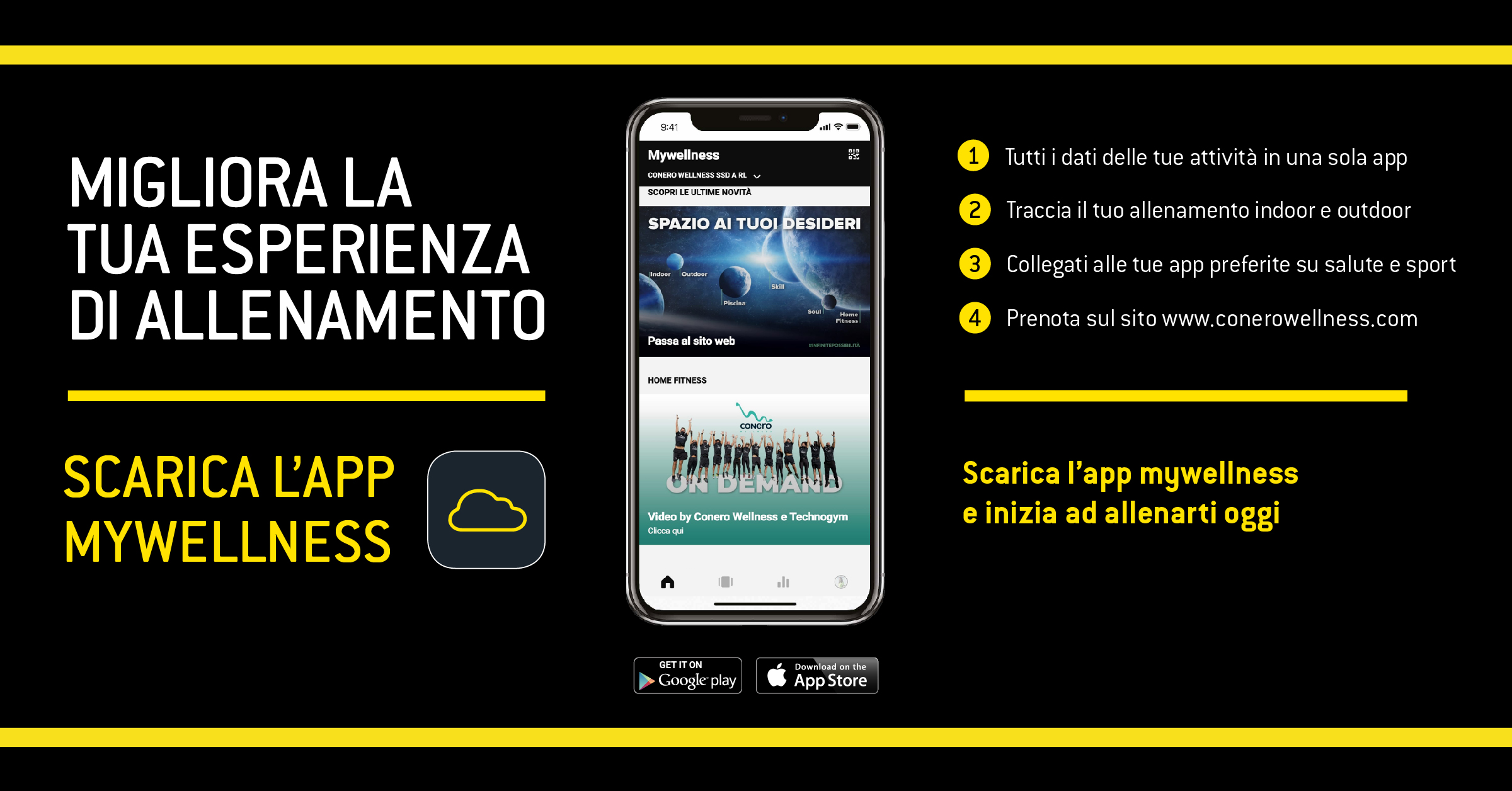 Per ottimizzare la compatibilità tra dispositivi e App in vista dell’arrivo di un nuovo aggiornamento software sui nostri Run e di tante novità sugli allenamenti live e online, torneremo presto ad utilizzare l’App Technogym “My Wellness”.